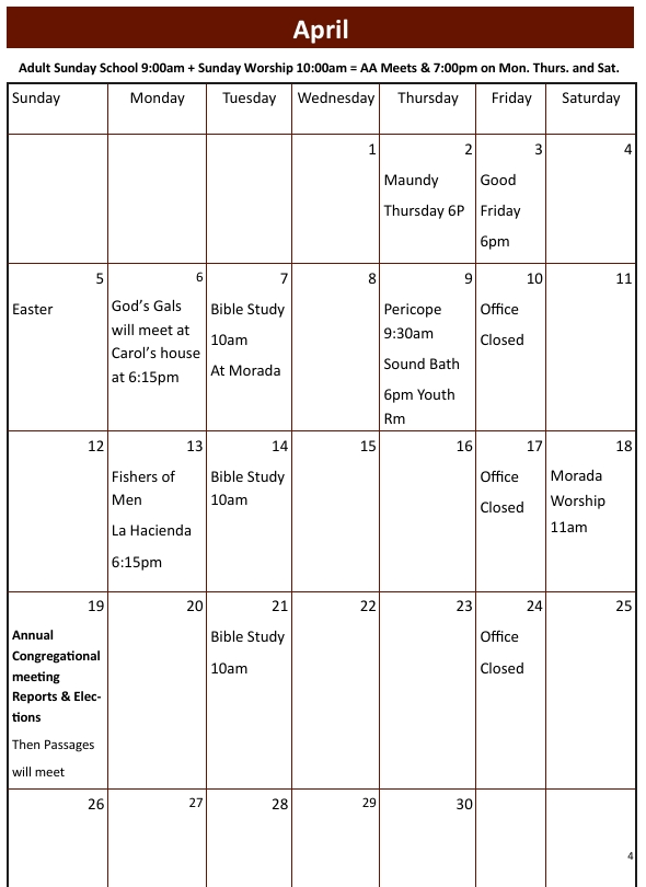 Children's Sunday School 9 am the 2nd Sunday of the month