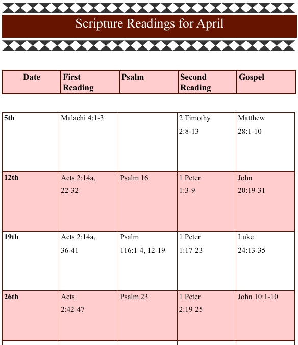 Scripture Readings for April 19, 2026 Third Sunday of Easter